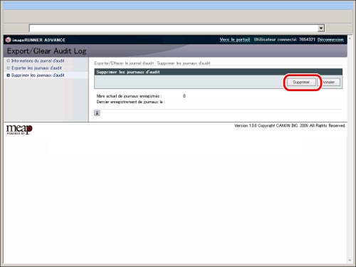 Noter que Canon ne peut être tenue responsable des dommages éventuels occasionnés par l'utilisation ou l'impossibilité d'utiliser la fonction de gestion des journaux.