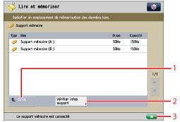 Pour plus d'informations sur les types d'icônes affichées pour le support mémoire, voir "Types d'icônes Espace avancé/Réseau/Support mémoire".