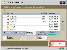 Il est nécessaire de régler <Utiliser pilote MEAP pour périph. USB externe> sur "Non" pour utiliser un support mémoire. (Voir "Utilisation du pilote MEAP pour le stockage externe sur un périphérique USB".)