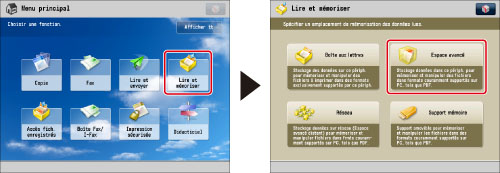 Ce mode est uniquement disponible pour mémoriser les fichiers dans l'espace avancé, l'espace avancé d'une autre machine imageRUNNER ADVANCE du réseau ou le support mémoire.