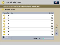 Pour plus d'informations sur les icônes affichées sur l'écran Boîte aux lettres, voir "Types d'icônes de boîte aux lettres".