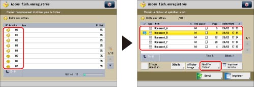 Sélectionner la boîte aux lettres souhaitée → sélectionner le fichier souhaité → appuyer sur [Modifier fichier].