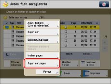 Ce mode permet de supprimer des pages d'un fichier mémorisé dans une boîte aux lettres.