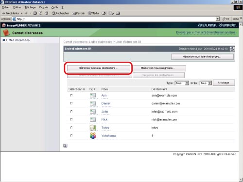 Une adresse e-mail peut être enregistrée efficacement de l'interface utilisateur distante.