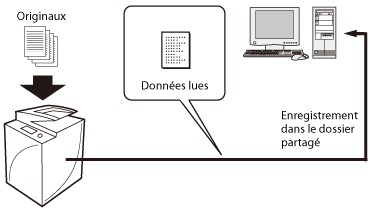 Les réglages peuvent être définis pour utiliser le dossier partagé (dossier [Public]).