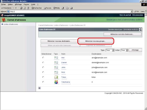 Accéder à l'interface utilisateur distante → cliquer sur [Carnet d'adresses] → sélectionner le carnet d'adresses sur la liste.