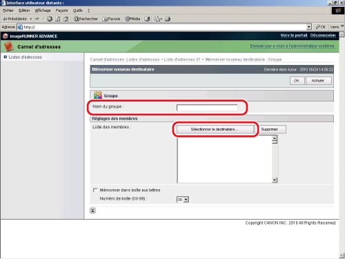 Saisir Groupe 1 dans [Nom de groupe] → cliquer sur [Liste d'adresses] sur la [Liste des membres].