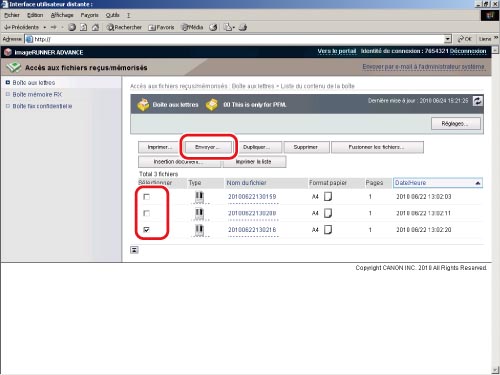 Sélectionner les documents à envoyer → cliquer sur [Envoi].