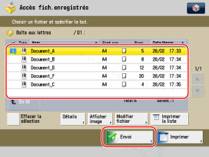 Sélectionner le document mémorisé → appuyer sur [Envoi].