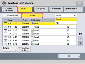 → [Envoi] → [Journal] → vérifier que l'envoi de l'e-mail a réussi.