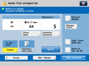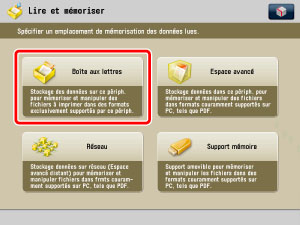 → [Réglages de fonction] → [Enreg./Accès fichiers] → [Réglages boîtes aux lettres] → [Régler/Mémoriser boîtes aux lettres]. |