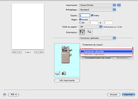 La fonction d'impression sécurisée, qui impose la saisie du mot de passe pour lancer l'impression, permet d'éviter que d'autres personnes ne voient les documents imprimés.