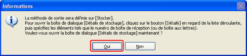 Sélectionner [Stocker] comme [Méthode de sortie].