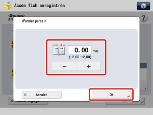 Appuyer sur [Régler largeur du massicot] pour régler la largeur de coupe, le cas échéant → appuyer sur [OK].