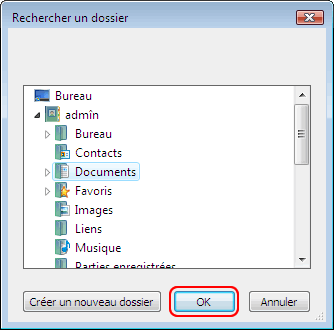 Sélectionnez un dossier dans l'espace partagé d'Espace avancé et cliquez sur [OK].