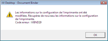 Ce message s'affiche si une erreur se produit sur l'imageRUNNER ADVANCE ou si l'état de l'imageRUNNER ADVANCE ne peut pas être confirmé en raison d'un échec de connexion au réseau ou d'une coupure du courant pendant la période allant du début de la mise en file d'attente effectuée par le spouleur de Windows, jusqu'à la fin de l'impression avec l'imageRUNNER ADVANCE.