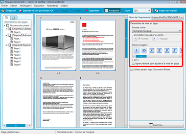 Pour obtenir davantage d'informations sur la manière de configurer la mise en page du Document Binder, reportez-vous à l'e-manuel du Document Binder.