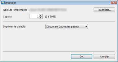 Sélectionnez [Document (toutes les pages)] ou [Imprimer les pages] dans [Imprimer la cible].