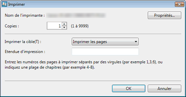 Lorsque vous sélectionnez [Imprimer les pages], spécifiez le nombre de pages dans [Etendue d'impression].