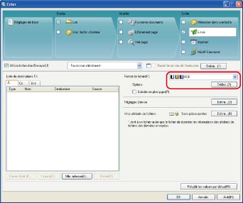 Dans le champ [Format de fichier], sélectionner [PDF] → cliquer sur [Définir (2)].