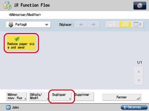 Sélectionner le flux à dupliquer ([Réduire le format papier et envoyer]) → appuyer sur [Dupliquer].