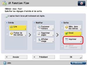Si l'écran des fonctionnalités de base d'iW Function Flow s'affiche, appuyer sur [Mém./Modifier].