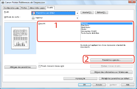 Pour plus d'informations sur l'accès à l'écran du pilote d'imprimante, voir "Impression" ou "Configuration des paramètres d'impression par défaut".