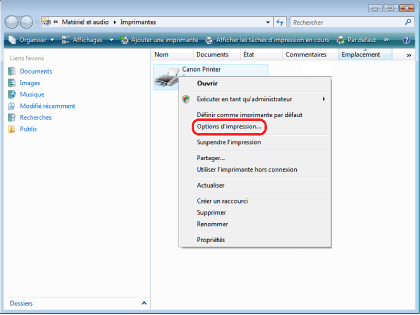 ] (Démarrer) → [Panneau de configuration] → [Imprimante].