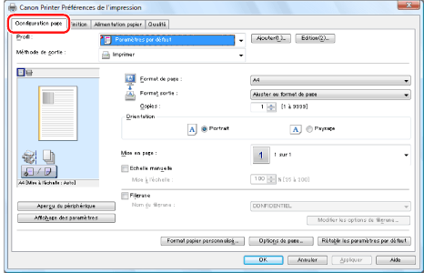 Configuration des paramètres d'impression par défaut".