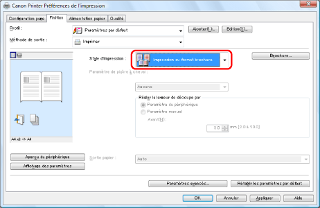 Sélectionner [Impression au format brochure] dans [Style d'impression].