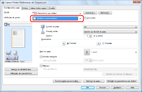 Sélectionner [Modifier et prévisualiser] dans [Méthode de sortie].