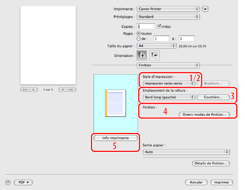 Les éléments affichés peuvent varier en fonction du système d'exploitation, du type de pilote d'imprimante et des fonctions.