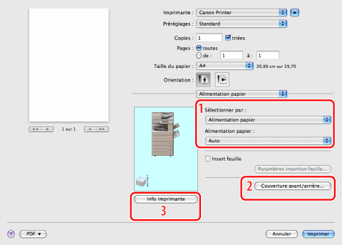 Permet d'imprimer les couvertures de dessus et de dessous sur un papier différent de celui utilisé pour les pages principales.