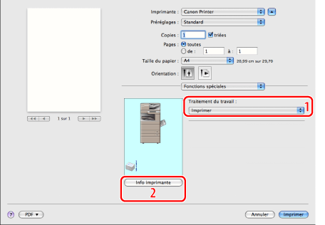 Les éléments affichés peuvent varier en fonction du système d'exploitation, du type de pilote d'imprimante et des fonctions.