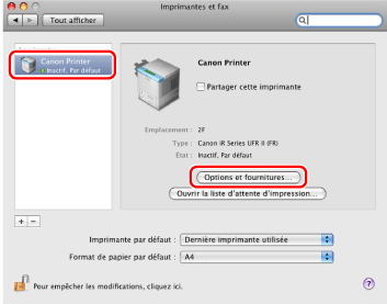 Il est important de ne sélectionner que les options réellement installées sur l'imprimante.