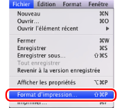 Sous Mac OS X 10,5.x, il se peut que la boîte de dialogue [Format d'impression] n'apparaisse pas, en fonction de l'application utilisée. Dans ce cas, passer directement à l'étape 4. Les options [Taille du papier] et [Orientation] peuvent être définies dans la boîte de dialogue [Imprimer].