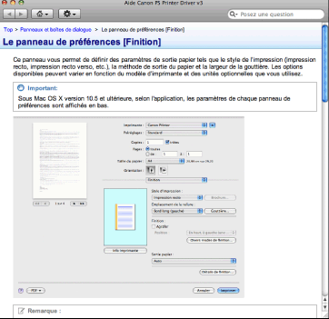 Sélectionner l'imprimante dans [Imprimante] → sélectionner l'un des panneaux de préférences → cliquer sur [
