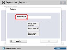 Per specificare un intervallo di indirizzi IPv4: premere [Intervallo di indirizzi] → premere [Primo indirizzo] → immettere il primo indirizzo IPv4 → premere [Ultimo indirizzo] → immettere l'ultimo indirizzo IPv4.