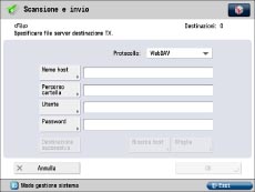Per [Nome host] è possibile immettere un massimo di 128 caratteri alfanumerici dal pannello comandi. Per [Percorso cartella] è possibile immettere un massimo di 255 caratteri alfanumerici. Specificare le impostazioni del server rispettando il limite di caratteri.