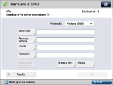 Per [Nome host] è possibile immettere un massimo di 128 caratteri alfanumerici dal pannello comandi. Per [Percorso cartella] è possibile immettere un massimo di 255 caratteri alfanumerici. Specificare le impostazioni del server rispettando il limite di caratteri.