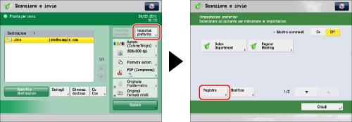 Premere [Scansione e invio] → impostare la destinazione e le impostazioni di invio da registrare.