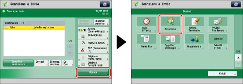 Specificare la destinazione → premere [Opzioni] → [Anteprima].