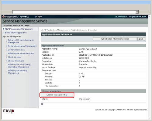 Fare clic su [MEAP Application Management].