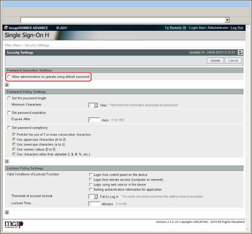 Se si utilizza la password predefinita con SSO-H, possono verificarsi problemi di protezione. Per utilizzare SSO-H, si consiglia di cambiare la password.