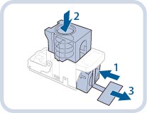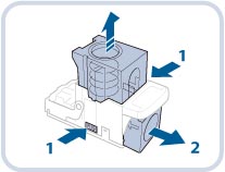 2. Dopo aver rilasciato il contenitore a molla, estrarre la cartuccia dei punti. |