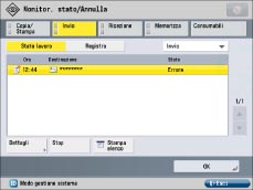 Se si imposta [Invio], [Stato lavori], [Invio] come Schermata predefinita (Monitoraggio stato/Annulla):