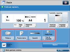 È possibile registrare modi nei tasti di selezione veloce visualizzati nella schermata Copia. Si possono registrare fino a cinque pulsanti da [Opzioni].