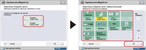 Premere un tasto di selezione veloce → selezionare l'impostazione da registrare nel tasto → premere [OK].