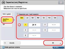 Se si seleziona [Specifica giorni], specificare un giorno della settimana (da [Dom] a [Sab]) → selezionare un numero (da [1] a [5]).