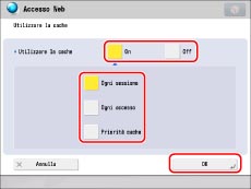 L'impostazione predefinita per [Utilizzare la cache] è 'Off'.